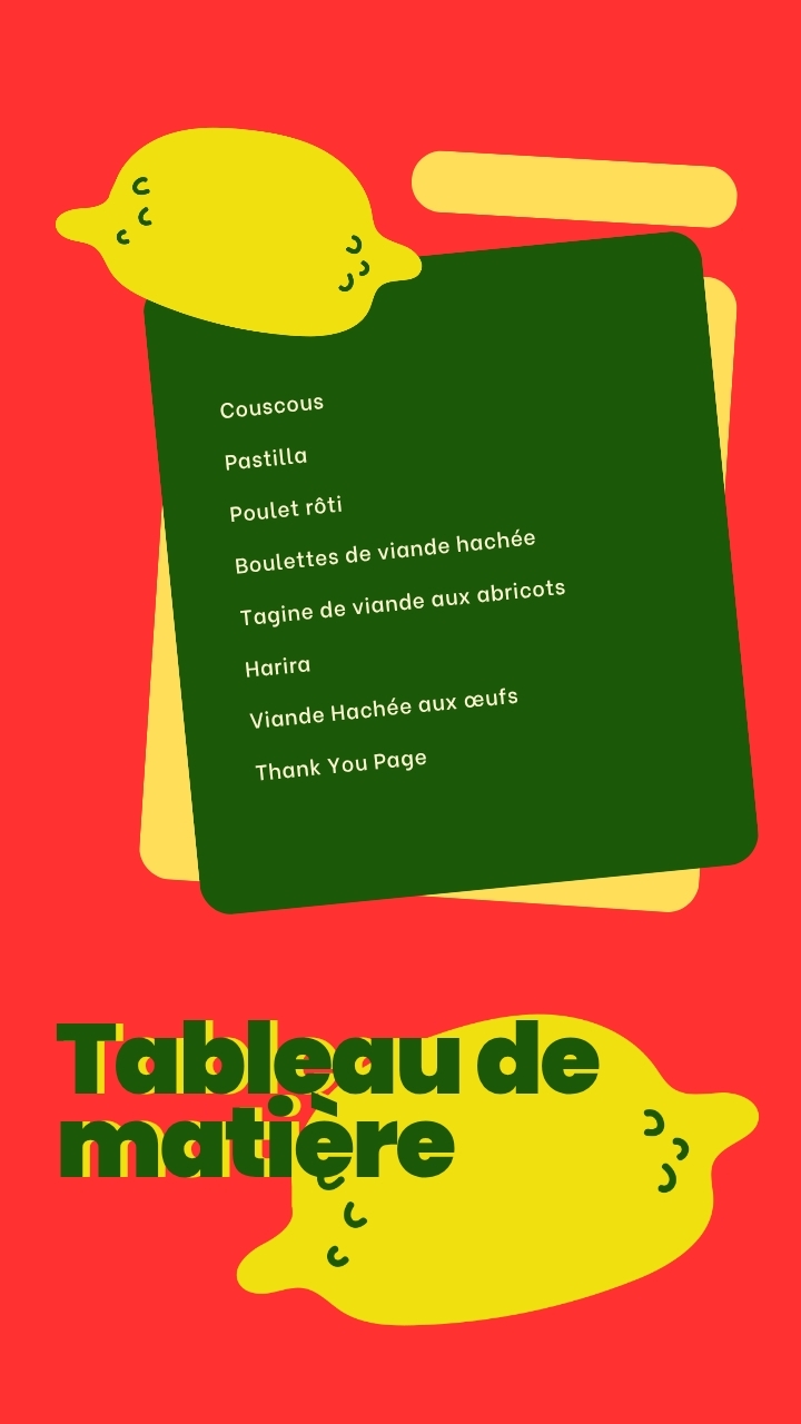 "Secret de la Cuisine Marocaine" is a delightful cookbook featuring traditional Moroccan recipes that are renowned worldwide. Spanning 17 pages, this book offers a glimpse into the rich culinary heritage of Morocco, showcasing a variety of dishes that reflect the country’s vibrant flavors and aromatic spices. Each recipe is carefully crafted to guide readers through the preparation of classic Moroccan meals, making it accessible for both novice and experienced cooks.